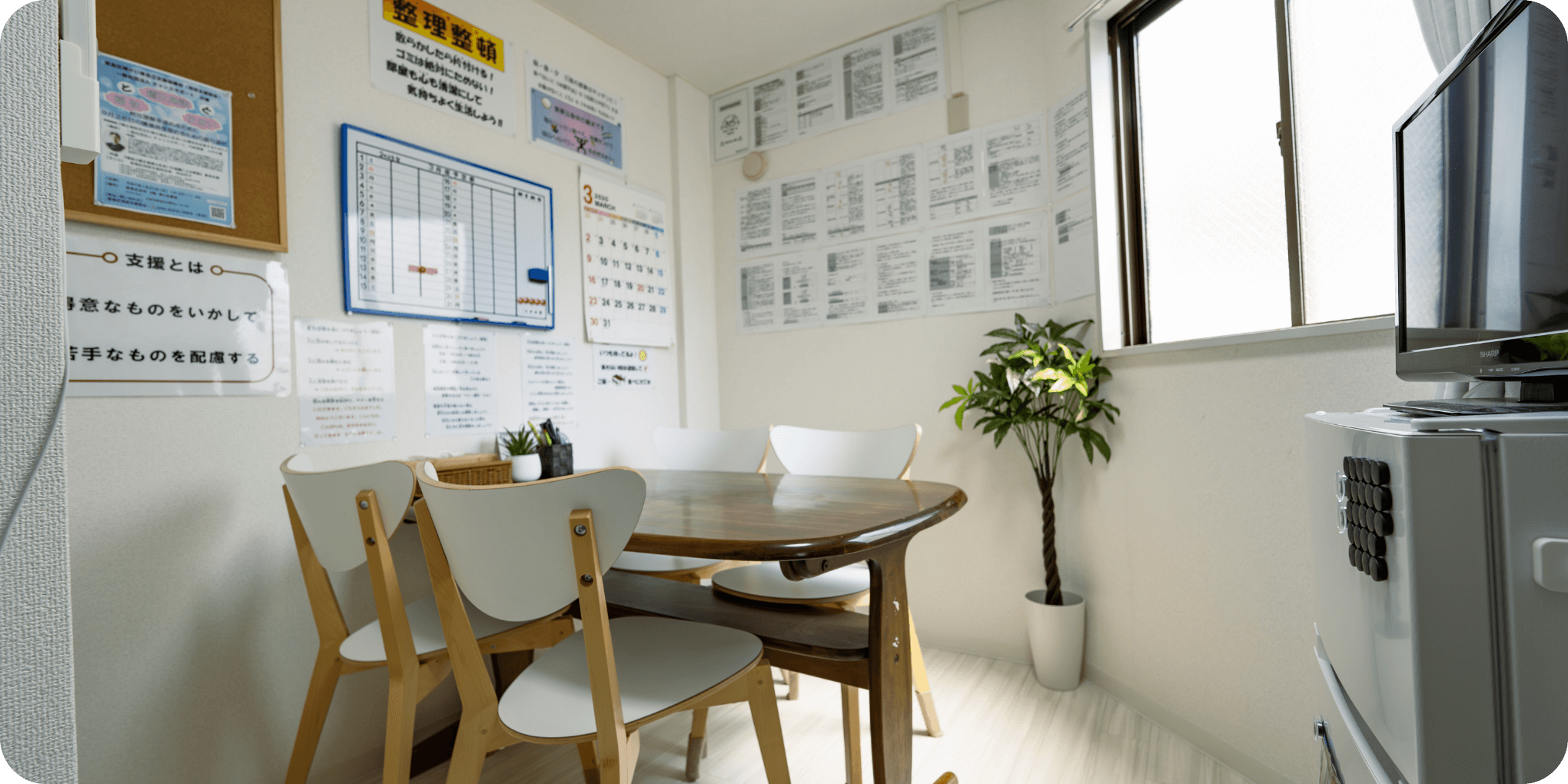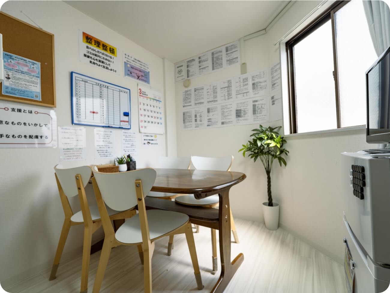 この場で、職員や他の利用者様と触れ合いができ、コミュニケーションがとれる環境になっております。