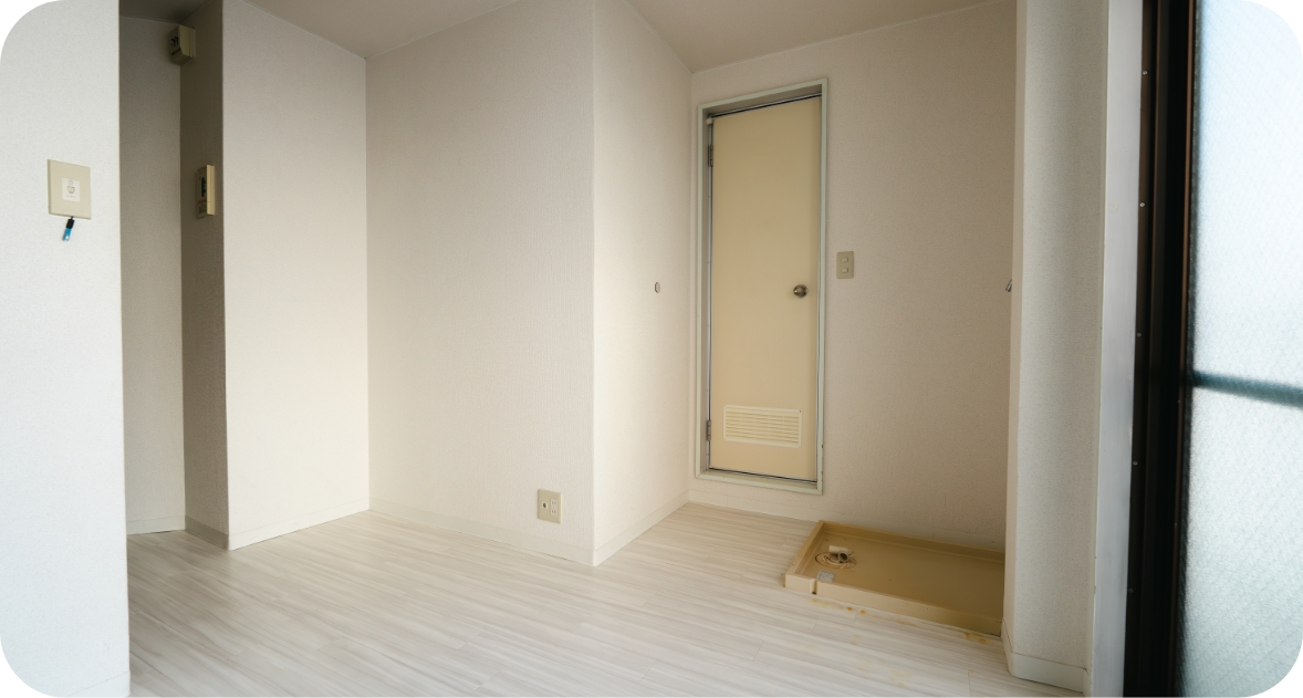 洗濯機をお持ち込みいただき、各部屋で行っていただきます。
