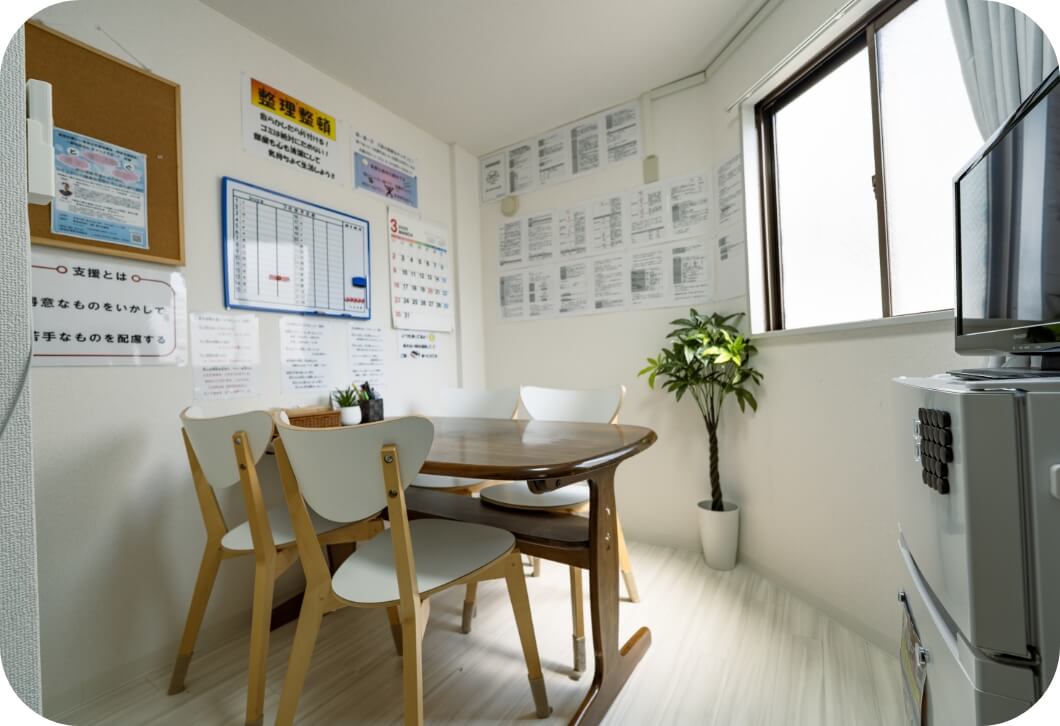 きさらは完全個室マンションタイプなので、プライベートをしっかり確保できる環境になっております。人と接する時間、自身の時間をしっかり確保することで、自立に向かって生活できる環境になっております。